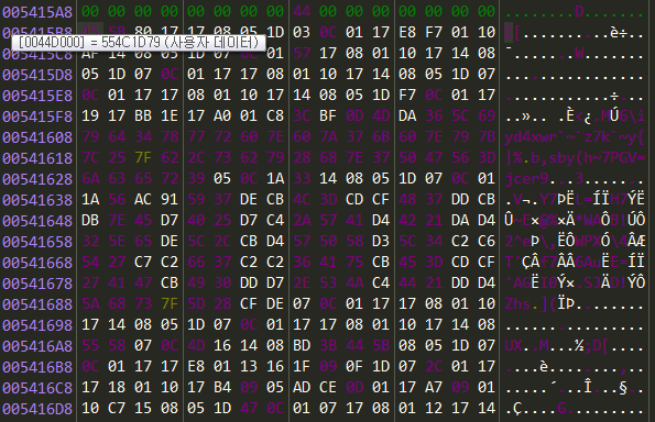 실제로 0x5415B8을 확인해보면 파일 데이터가 그대로 쓰인 것을 볼 수 있다.