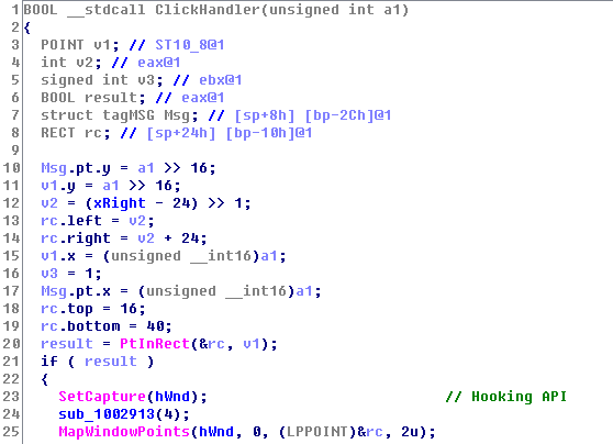 TargetAddr = (LPTHREAD_START_ROUTINE)GetProcAddress(hMod, "NtUserSetCapture");