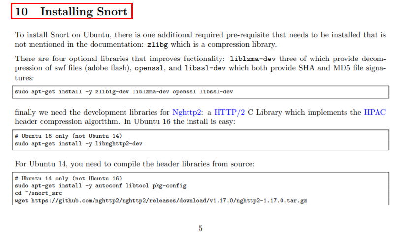 다 읽을 필요는 없고 아래 '10 Installing Snort'부터 실행해나가면 된다.