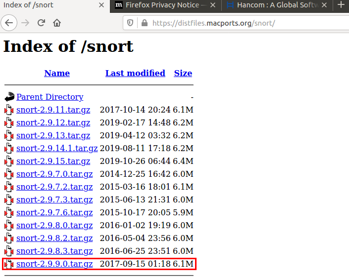 설치 가이드상, 우분투 16 버전에 snort-2.9.9.0 을 다운받는걸로 보아 제일 호환성이 좋은건가 하고 그냥 맨나래 2.9.9.0을 다운받았다. 사실 2020년에 우분투 16.04는 좀 오래된 버전이긴 하다.