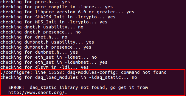 추가적으로 configure 시 발생한 'daq_static library not found, go get it from ~' 와 관련한 에러는 snort 홈페이지에서 받으라고 친절하게 설명되어있다.
