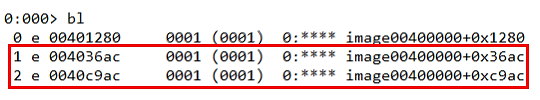 0 e 00810690 w 4 0001 (0001) 0:**** image00400000+0x410690 "dd 00810690 L1;g"