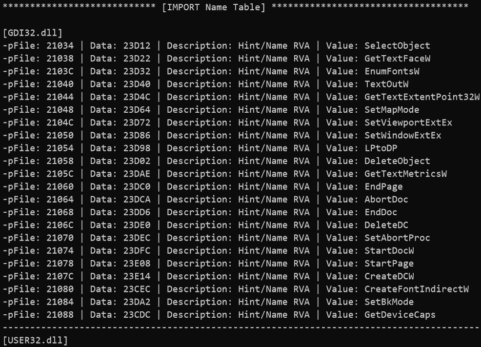 else printf("Hint/Name RVA | Value: %s\n", (char*)iibn->Name);