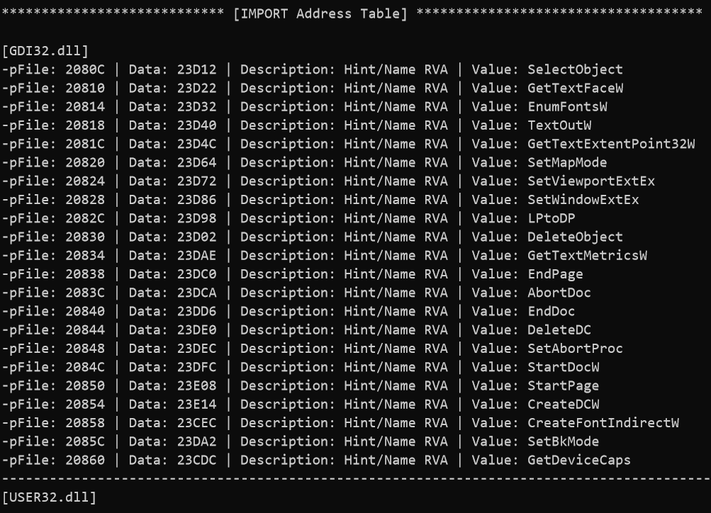 printf("**************************** [IMPORT Address Table] ************************************\n\n");