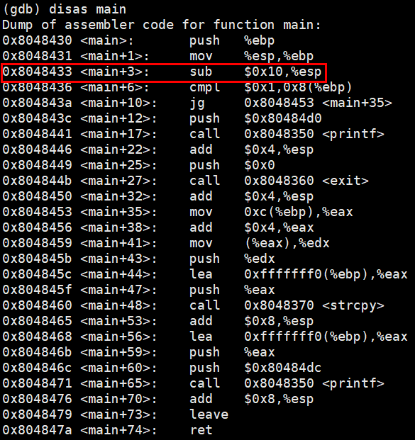 gdb로 main문을 먼저 확인해본 결과 0x10을 할당하고 있으므로 dummy는 없는 것 같다.
