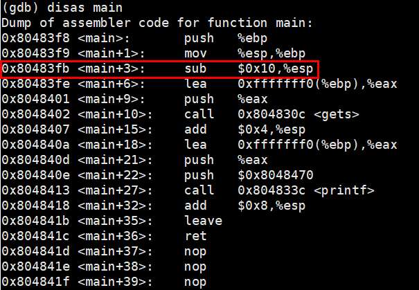 gdb로 main문을 살펴보니 총 0x10바이트(16)를 할당하는 것으로 보아 dummy 값은 없는 것으로 보인다.