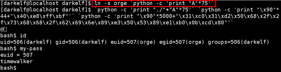 그런데 한가지 문제점이 tmp에 있는 파일을 대상으로 하면 복사파일이기 때문에 익스가 성공해도 orge 계정 권한을 획득할 수 없게된다. 따라서 고민하던 중 링크를 참고해서, 심볼릭 링크를 거는 방법을 사용해서 쉘을 획득 할 수 있게됐다.