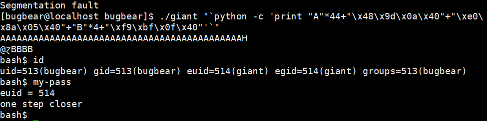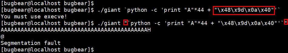 [bugbear@localhost bugbear]$ ./giant "`python -c