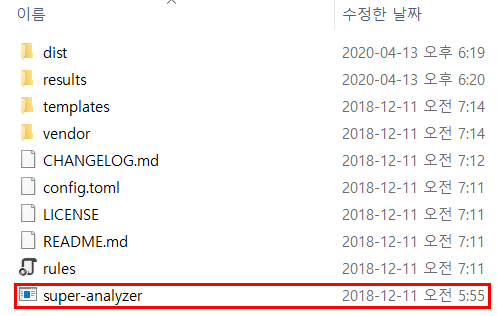 설치된 폴더를 보면 아래와 같이 super-analyzer.exe 파일이 있다.