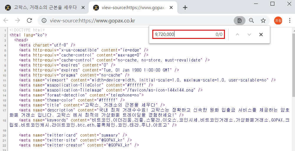 # 고팍스 거래소 페이지 URL