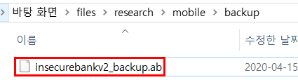 그럼 아래와 같이 insecurebankv2_backup.ab 파일이 생긴 것을 볼 수 있다.