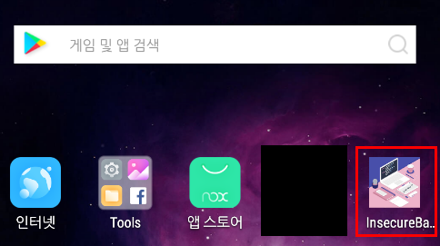 서명을 성공적으로 마치고 녹스 에뮬레이터에 위변조한 앱을 설치하려는데 아래와 같은 INSTALL_FAILED_UPDATE_INCOMPATIBLE 에러가 발생했다. 해당 에러는 같은 서명값을 가진 apk 파일이 충돌하기 때문에 발생하는 것으로 그냥 원래 설치되어있는 인시큐어뱅크 앱을 삭제해주면 된다.