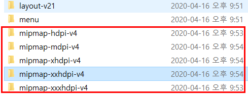 .png로 검색하다 보니, res 폴더 안의 아래 5개의 폴더에 아이콘 및 메인화면의 이미지가 들어있는 것을 확인했다.
