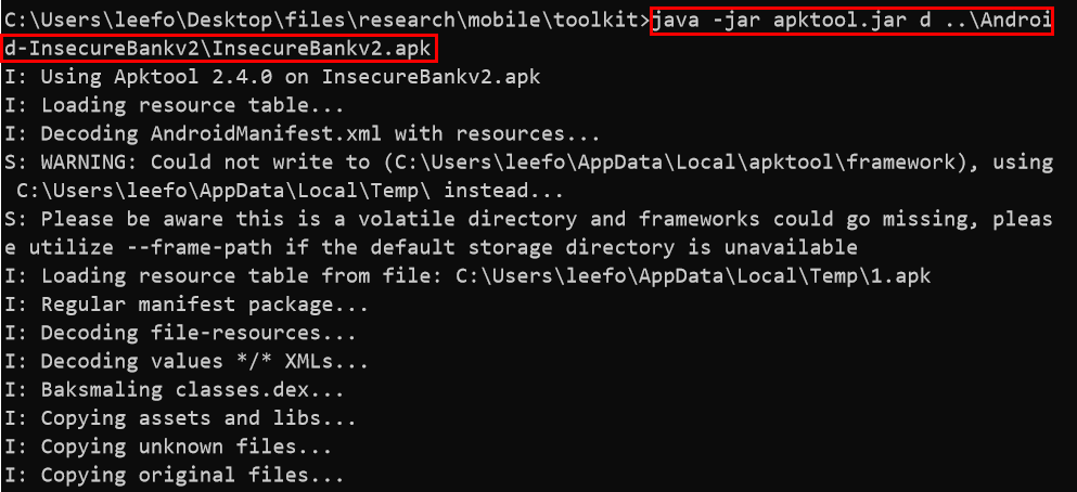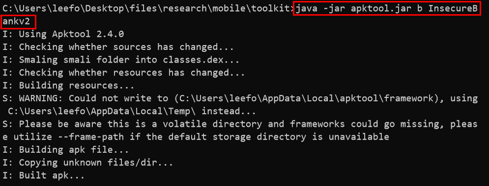 > java -jar apktool.jar b InsecureBankv2
