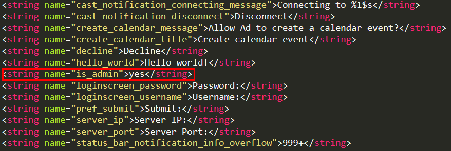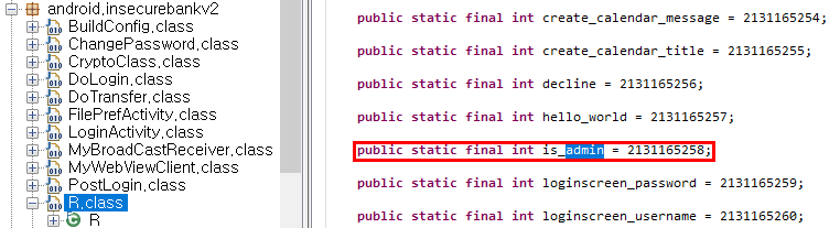 dex2jar로 디컴파일한 jar 파일을 JD-GUI로 봐보자. R.class 를 보면 is_admin 값이 아래 숫자와 같음을 알 수 있다. (자바는 정말이지... 모르겠땋ㅎㅎ)