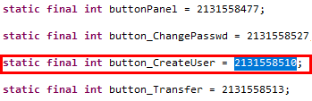 findViewById 내부의 숫자코드를 R.class에서 검색해보면 button_CreateUser 이다.