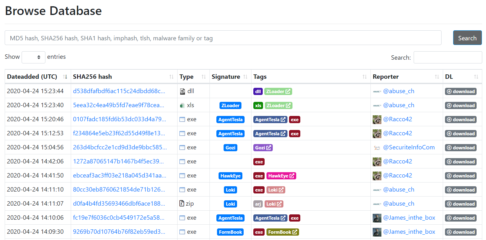 멀웨어바자, 악성코드 샘플 무료 다운로드 사이트