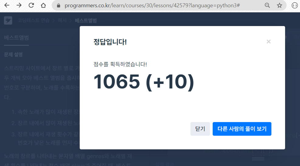 프로그래머스 해시 - 베스트앨범, 문제 확인