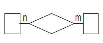 1:1, 1:N, N:M 등의 개체 관계에 대해 선 위에 대응수를 기술함 |