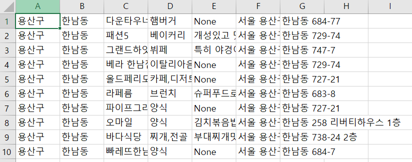 names=['gu','dong','name','category','microReview','commonAddr','addr'], \