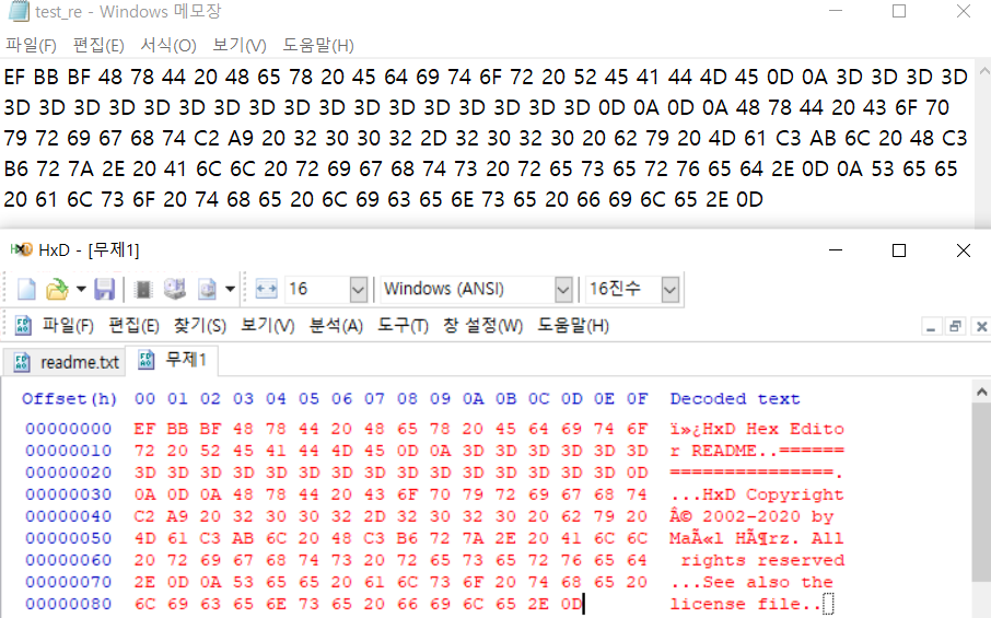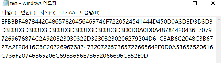 아래와 같이 만들고, HxD에 그대로 붙여넣어서 값을 확인하면 편하다. 문자열인지 코드인지 PE파일인지 등등을 확인할 수 있다.