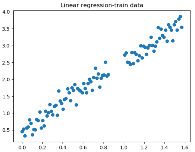 학습 데이터와 테스트 데이터를 각각 plot한 아래의 결과를 보면 알 수 있다시피, 학습/테스트 데이터셋은 x,y 값으로 이루어진 아주 간단한 몇개 안되는 데이터이다.