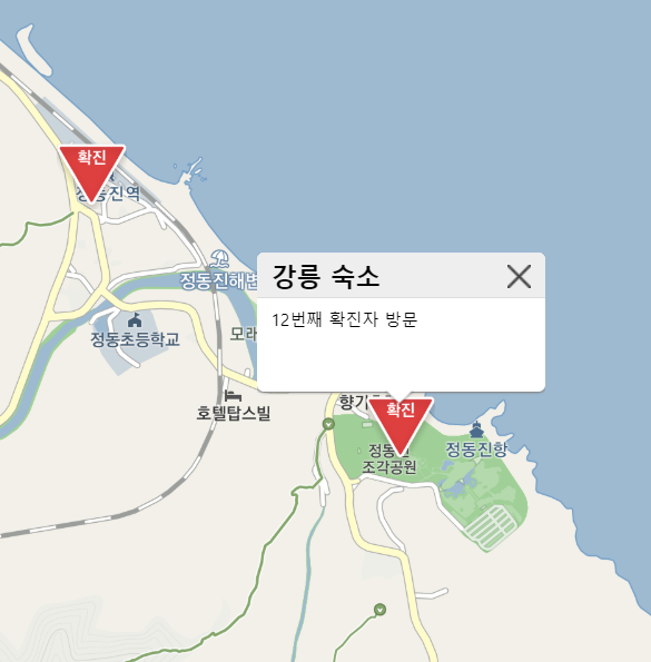 12, 14번째 확진자 부부는 강릉도 다녀온 모양이다. 강릉 숙소와 음식점이다.