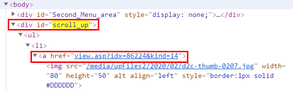 find_element_by_id를 이용해서 'scroll_up' div 에 접근한 후 find_element_by_tag_name을 사용해 <a> 태그에 접근한 후 get_attribute로 href 속성 값을 얻어줄 것이다.