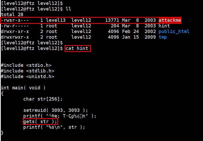 FTZ level12 문제 확인
