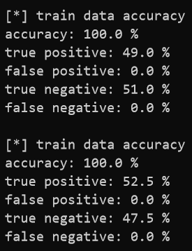 #accuracy,true positive,false positive,false negative,true negative of train data
