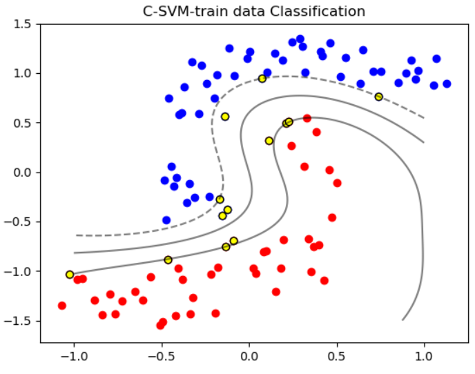 파이썬 sklearn svm의 svc를 사용하였고 svc를 사용하면 fit(x data, label data)을 사용해 선언해준 모델을 학습시킬 수 있다. svc에 지정해줄 수 있는 인자가 굉장히 많은데 여기서는 svc의 인자로 kernel과 C를 사용할 것이다. kernel은 쉽게 데이터셋을 분류할 커널 방식을 지정해준다고 생각하면 되고 C는 마진과 관계가 있다.
