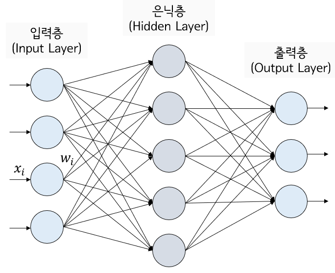 다층 퍼셉트론은 위에서 보는바와 같이 입력층(Input Layer), 은닉층(Hidden Layer), 출력층(output Layer)로 구분되어 있다. 여기서 은닉층은 1개일수도 있고 그 이상일 수도 있다. 어쨌든 다층 퍼셉트론은 단층 퍼셉트론의 한계를 극복하기 위해 등장한 층이 3개 이상인 퍼셉트론이라는 것이 중요하다.
