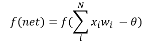 즉, 쉽게 표현하면 (임계값은 없다고 가정 시)각 입력값 xi와 가중치 wi를 전부 곱해서 더한 총합을 활성화 함수에 넣어서 나온 결과값이 f(net)이다.