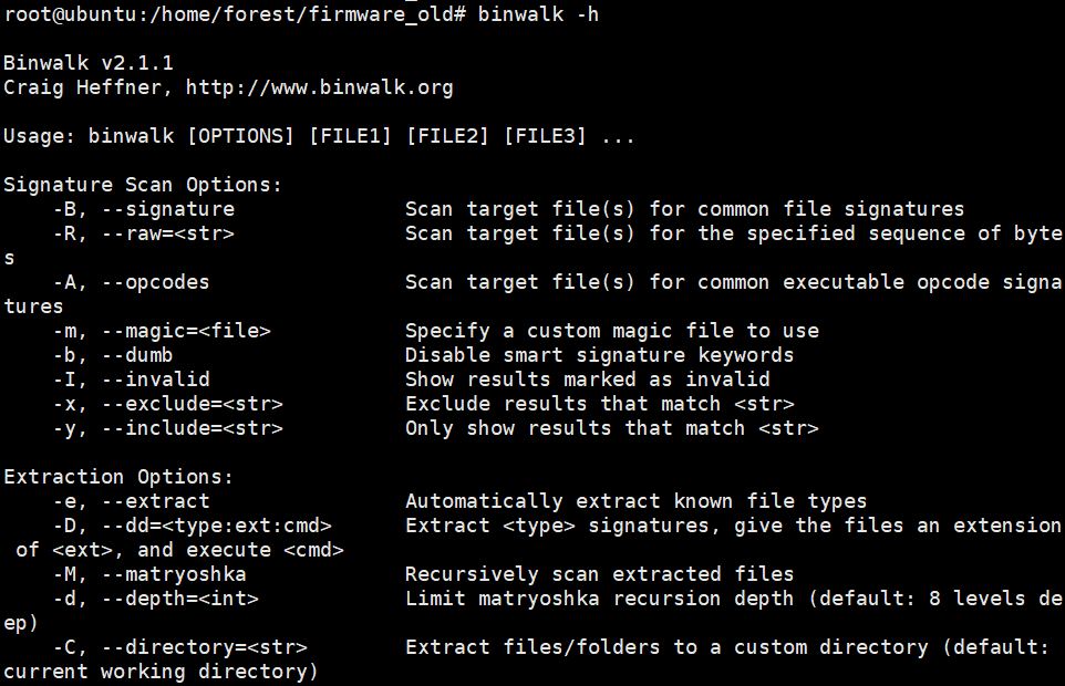 binwalk 옵션은 상당히 많은데 이 중에 자주 쓰이는 옵션만 다뤘다.