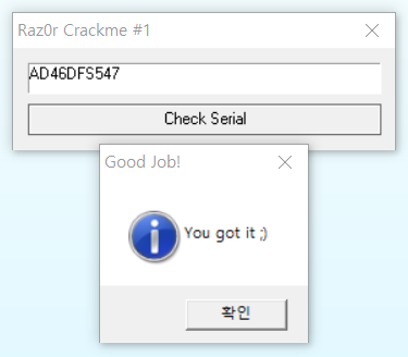 파일을 실행시켜 보니, 아래와 같이 시리얼을 입력받도록 되어있다.