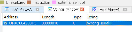 언팩이 정상적으로 진행됐으니 이제 시리얼을 찾아보자. string에서 serial을 찾아보니 하나가 있다.