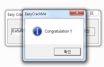 그럼, 완성된 시리얼값을 넘겨주면 "Congratulation !!" 창을 확인할 수 있다.
