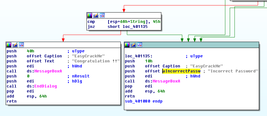 해당 함수로 가보면, 아래와 같이 cmp 결과에 따라 실패/성공 두 분기로 나뉘는 것을 볼 수 있다.