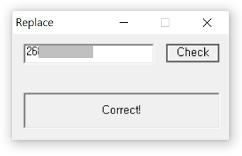 Replace.exe는 입력값을 받아서 check하는 심플한 프로그램이다.